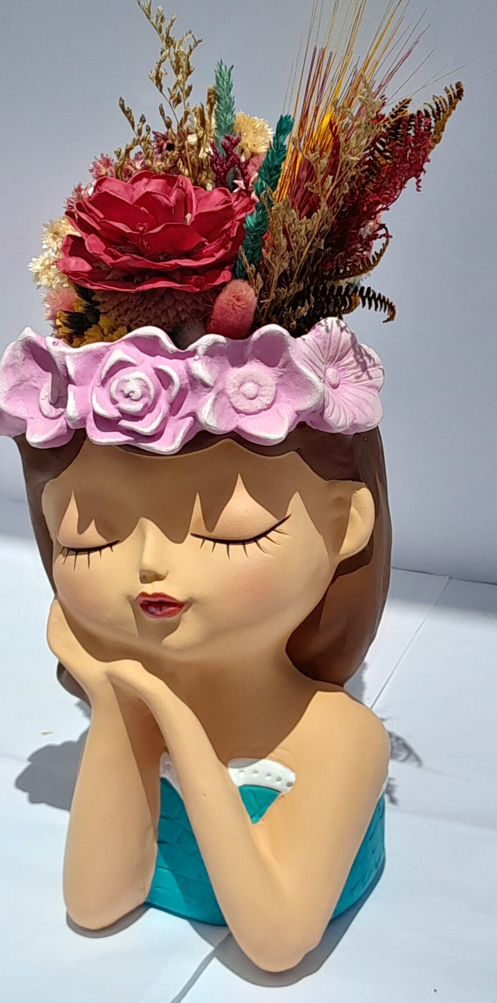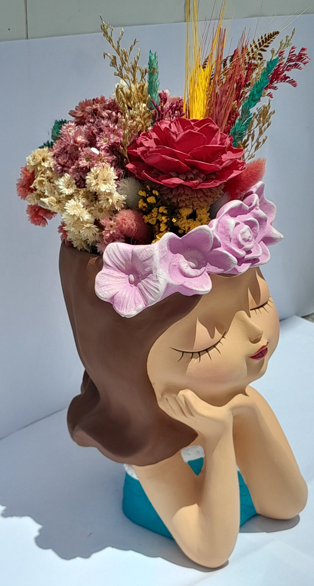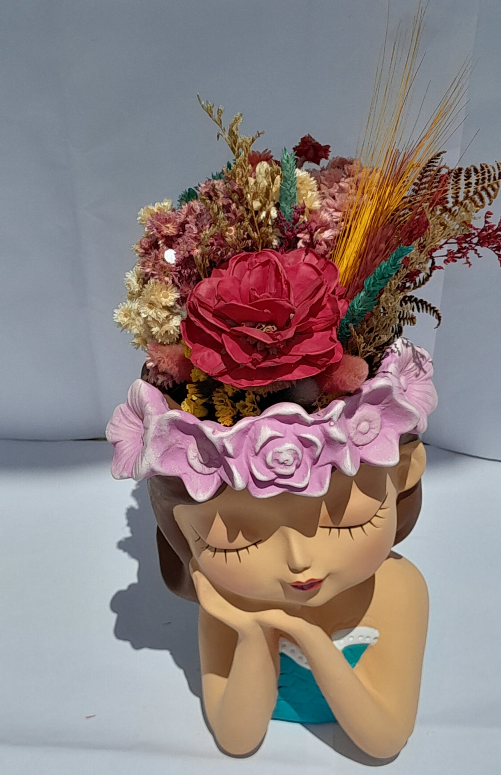 Florero de Cerámica Soñadora con Diadema de Flores y Ramo Eterno – Regalo Decorativo