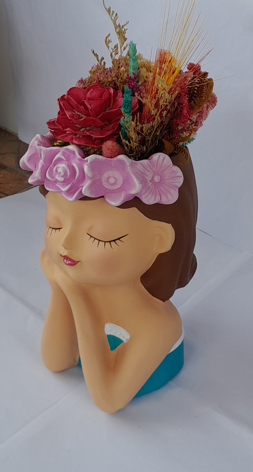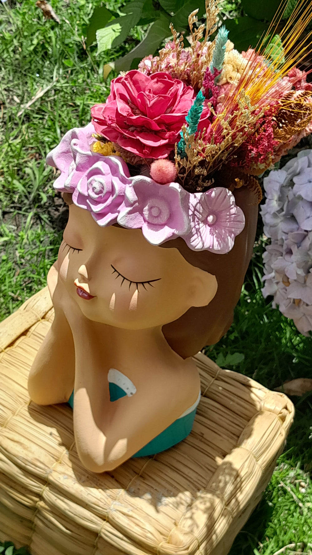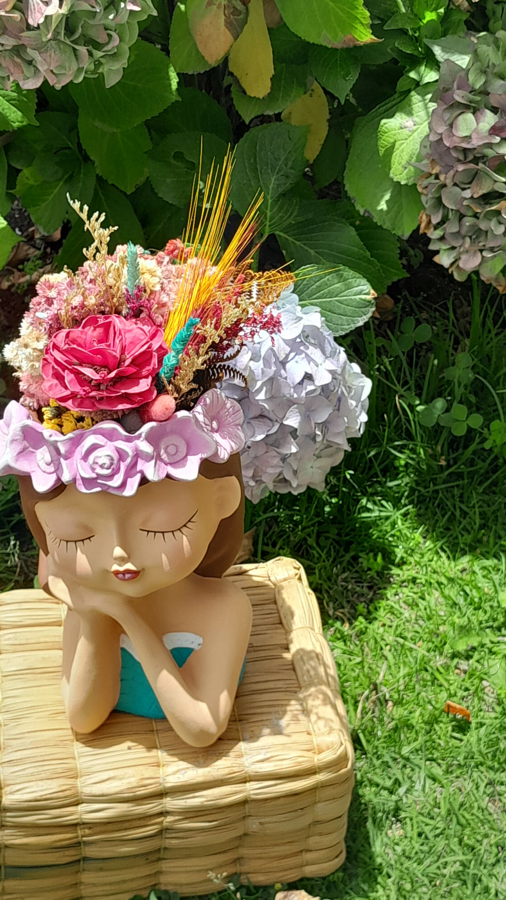 Descubre la magia de este florero de cerámica soñadora con diadema de flores, una pieza artesanal que enamora a primera vista. Incluye un ramo de flores eternas, que mantendrán su encanto sin marchitarse, convirtiéndolo en el regalo perfecto para ocasiones especiales como cumpleaños, aniversarios, Día de la Madre o detalles románticos.
